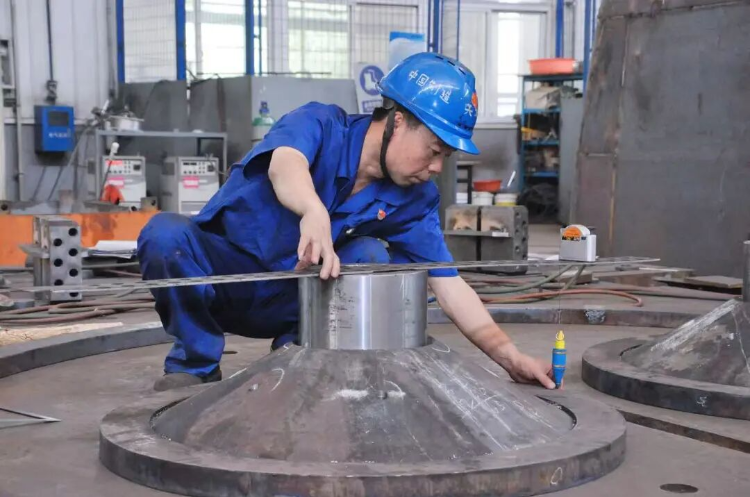 面对碾盘山机组内锥大径规格、高位体量、高空作业风险高、加工难度大等瓶颈,他反复摸索试验,优化摆装方案,将制造周期由60天缩短至40天,节约工时1600小时;针对压力机空间狭小的难题,他长期蹲守试验,精准控制多圆弧过渡弧板的压制压力,将产品与样板间隙控制在0.5mm,远超行业1.5mm标准,用极致精度筑牢产品质量防线。