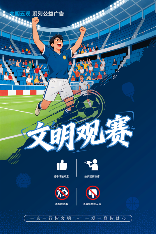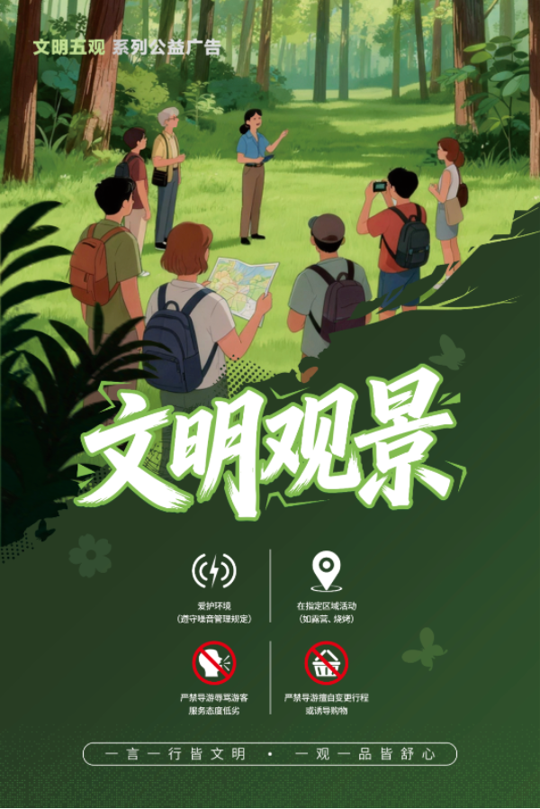“文明五观”,是融入生活的行为准则,更是需要久久为功、持续践行的社会共识。从赛场的有序观赛,到影院的安静观影,从演出现场的理性支持,到文博场馆的敬畏观赏,再到自然风光里的用心守护,每一个细节的文明举动,都能让美好相伴,让舒心相随。